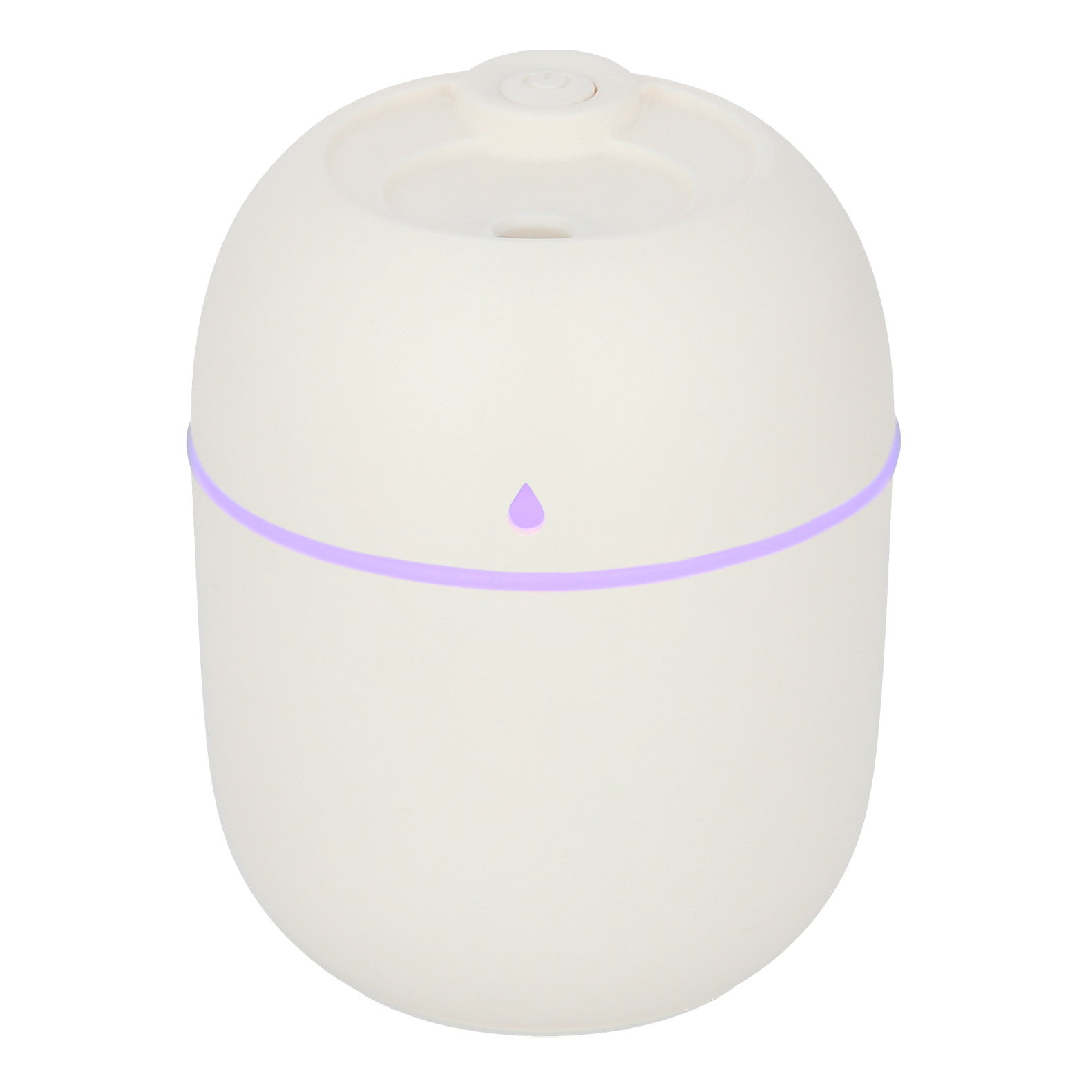 Humidifcador con luz intercambiable (blanca, amarilla y azul). Incluye cable de carga DC5V. Tiempo de funcionamiento de 5 a 10 hrs.