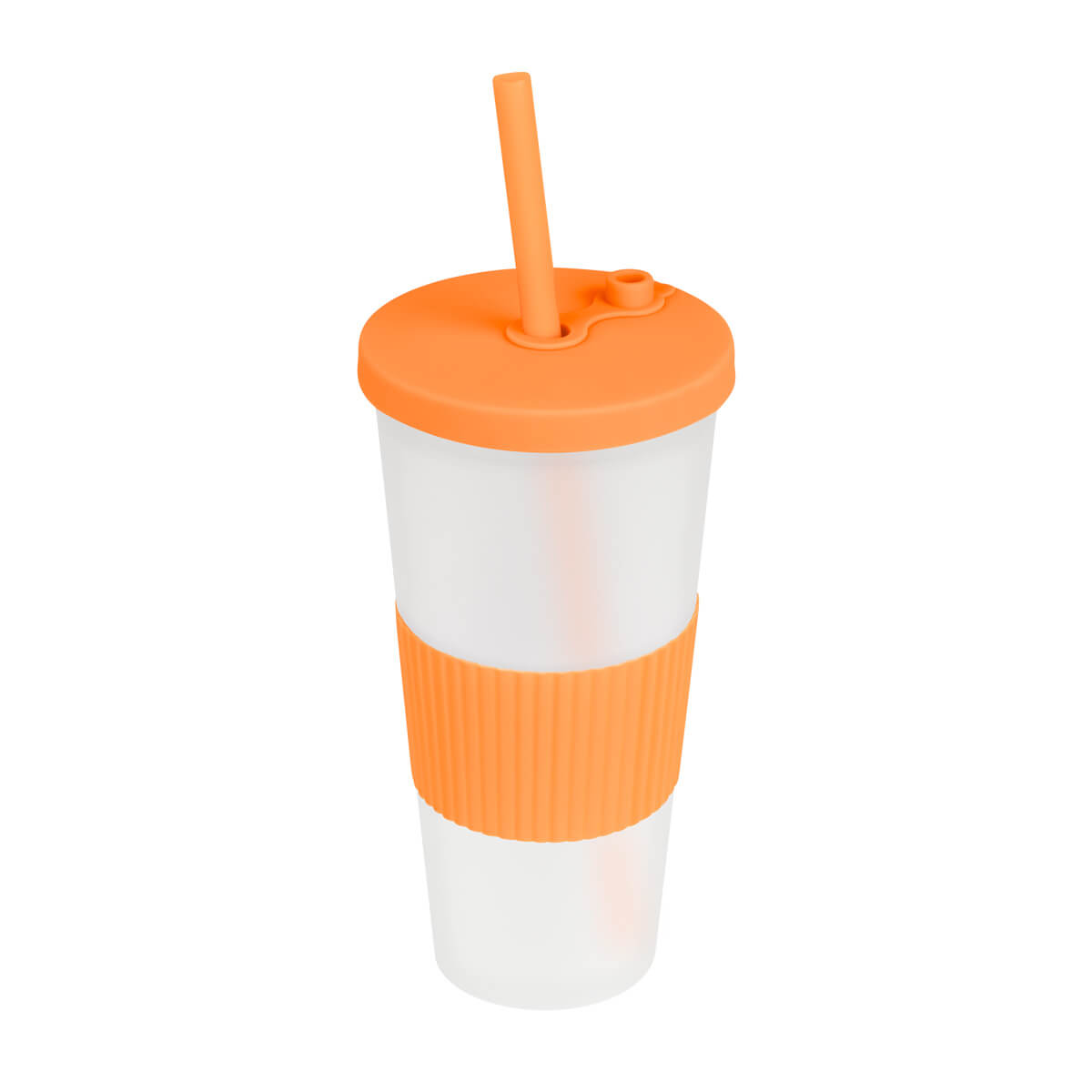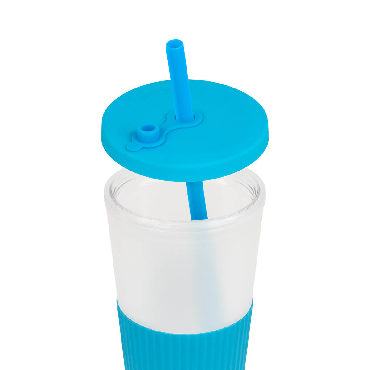 Vaso doble pared. Pared interna y externa de plástico. Tapa de plástico con sistema de rosca. Incluye popote. Cuerpo frosty con terminado suave. Su diseño con manga de silicón antideslizante garantiza un agarre cómodo y seguro. Capacidad 22 Oz. Base de 6.4 cm de diámetro. Caja individual incluida.