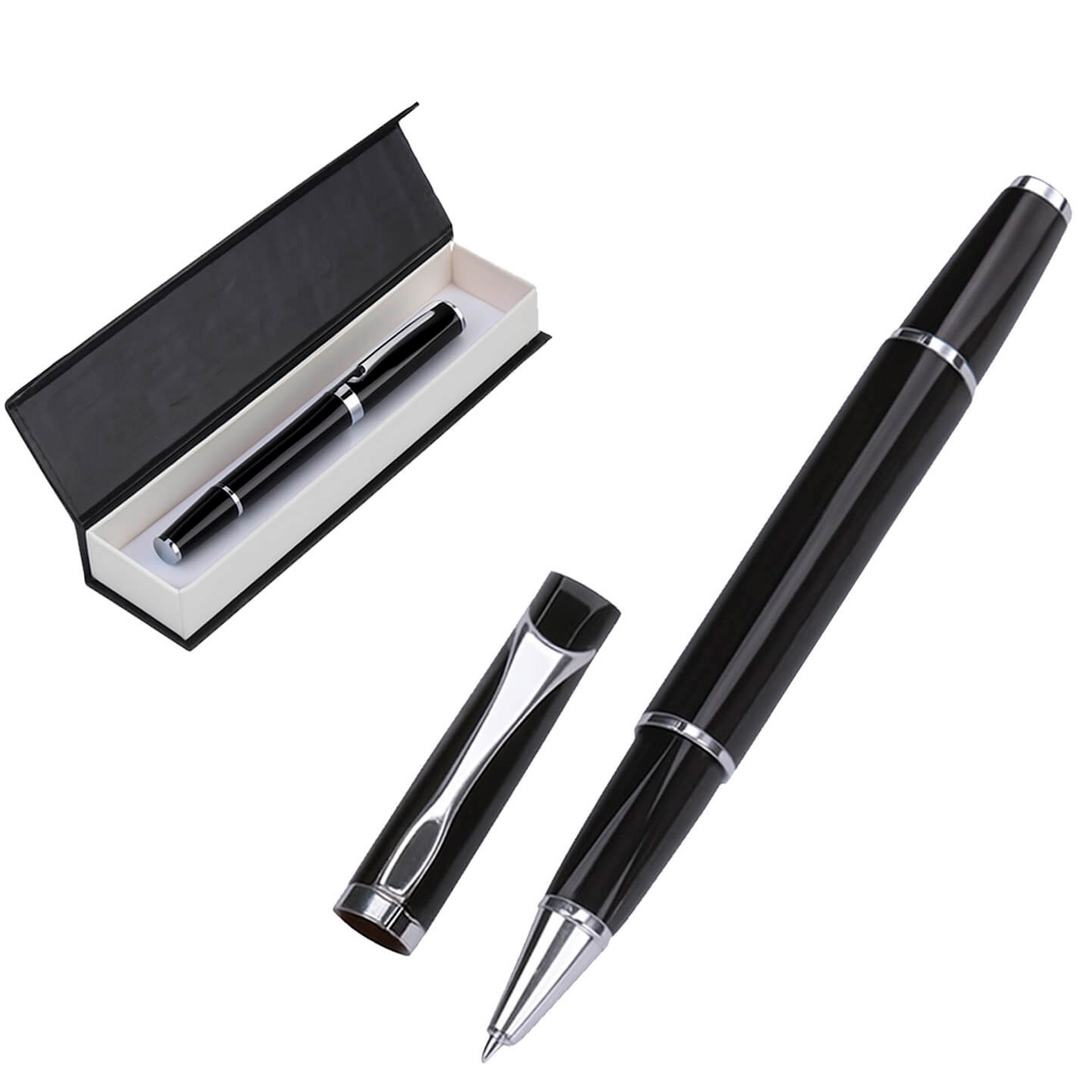 Bolígrafo metálico roller con estuche de cierre magnético.