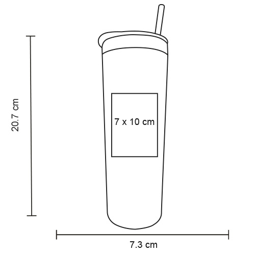 Termo con doble pared de acero inoxidable, insulado al vacio, con acabado platic painting, tapa de cierre a presión y seguro deslizable. Incluye popote de metal con limpiador.