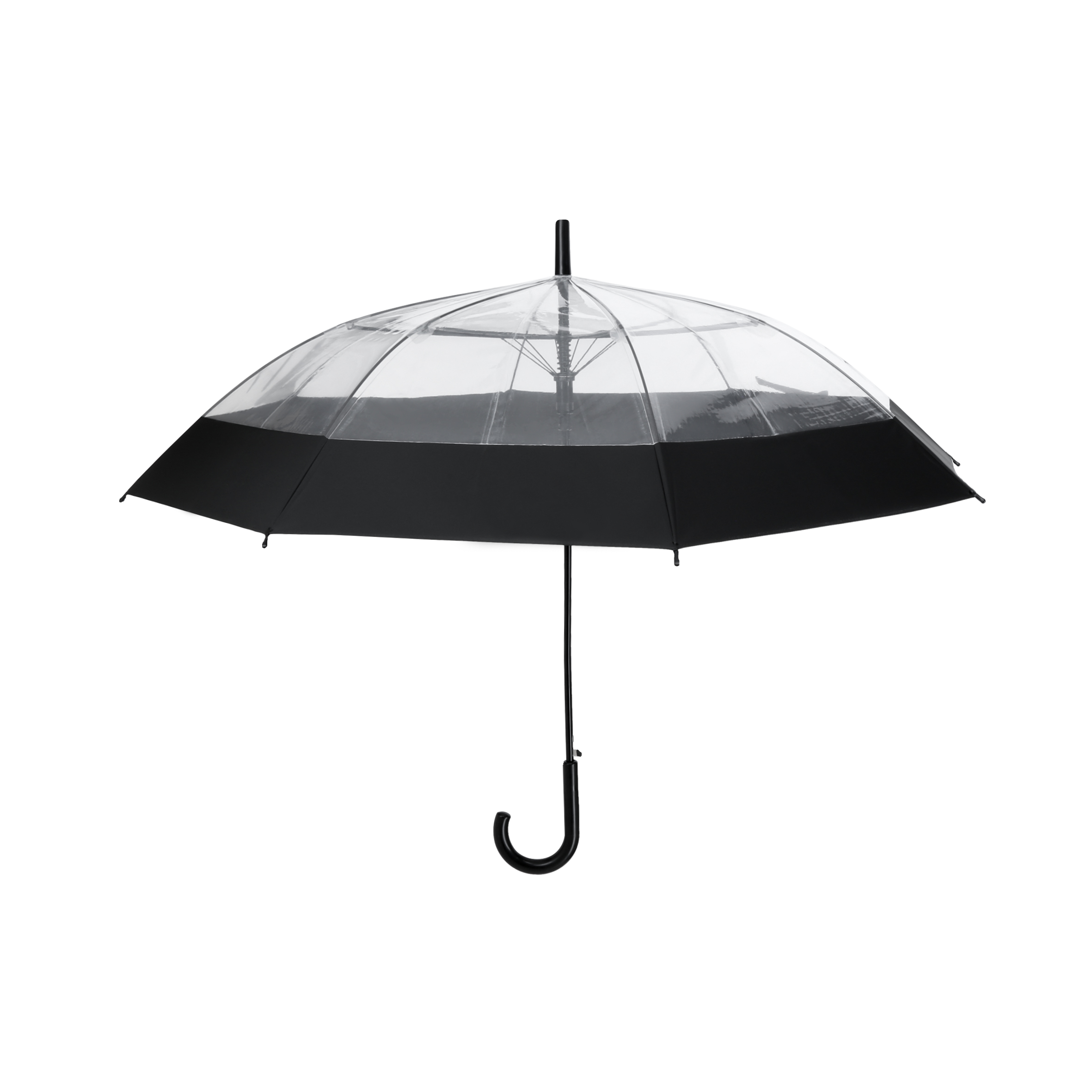 Paraguas impermeable de apertura automática, 8 gajos, mango de plástico y broche de botón.