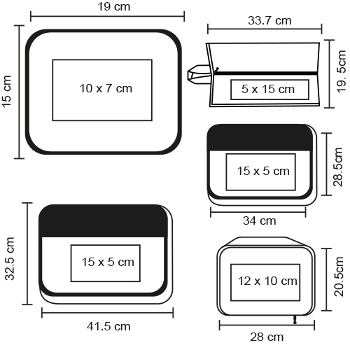 Set de bolsas organizadoras de equipaje. Incluye tres bolsas de diferentes tamaños, una zapatera y un estuche de guardado transparente con cierre.