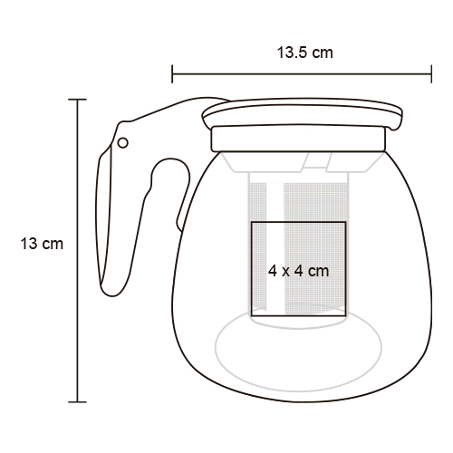 Cafetera de cristal con infusor de acero inoxidable con tapa y asa de plástico.