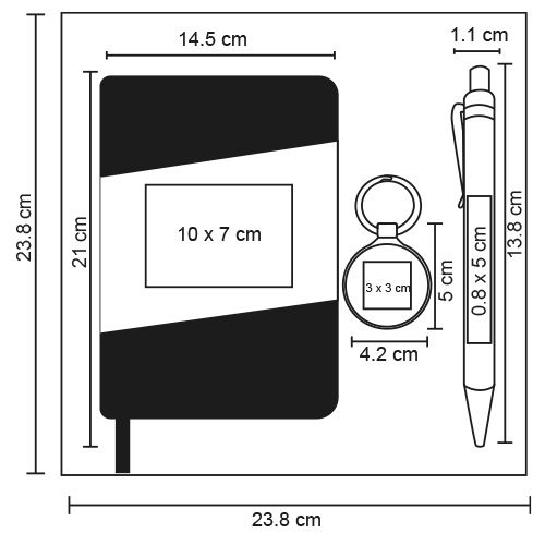 Set ejecutivo incluye: llavero metálico con detalle en bambú, bolígrafo de bambú, libreta y caja de regalo.