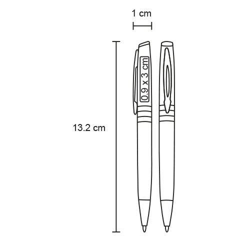 Bolígrafo de plástico con apariencia metálica y cuerpo sólido.